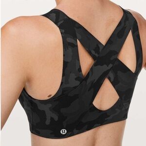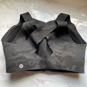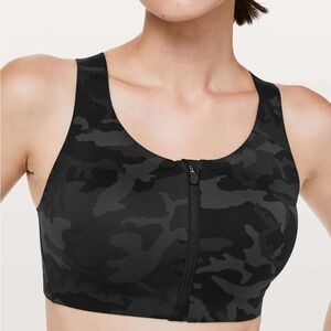 Lululemon Enlite Bra Zip Front Incognito Camo Multi Grey Cross Back 32E DD
