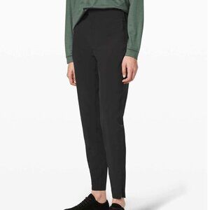 lululemon lab creates lifestyle essentials for the modern wardrobe. We designed these slim-leg trousers with an innovative adjustable waistband, so you can find your perfect fit. The sleek, office-ready fabric has a DWR finish to keep you dry on drizzly commutes.