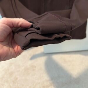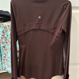 Gently worn Lululemon brown define jacket size 10. Original owner. Love this color just need a smaller size. I have worn this. It has been washed in Tide Free and line dried. No stains or tears. Smoke free home.