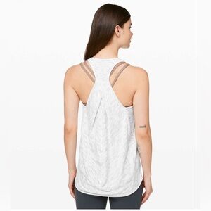 Lululemon Essential Tank in Tiger Space Dye Hail White women’s size 10. In fantastic preowned condition with no rips, holes, or stains. Worn only a couple of times. Does not have rip tag but personally bought by me so it is a size 10.