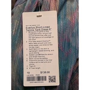 Lululemon Everlux Short-Lined Tennis Tank Dress 6" 'Pixel Diffuse Multi | 10 NWT