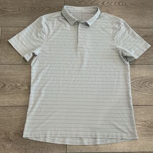 Lululemon Evolution Golf Polo Shirt Mens Large Gray Striped Casual Preppy