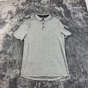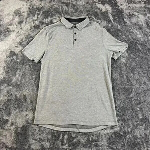 Lululemon Evolution Polo Men's M Gray Short Sleeve Performance Golf Stretch. **A few faint stains on shirt; I only noticed them under bright light. Size tag has been cut out; measurements are consistent with a size M. Refer to all photos for condition and sizing.