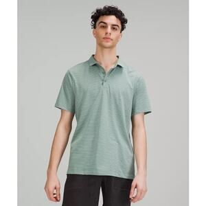 Lululemon Evolution Short Sleeve Polo Agile Stripe Tidewater Teal White Opal M