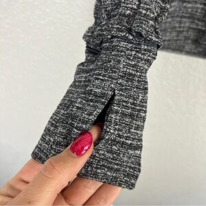 This Lululemon Extra Mile Hoodie in ringspun denim black and white features soft Rulu fabric with subtle stretch, moisture-wicking comfort, and a stylish heathered texture. Designed with delicate ruffle trim at the cuffs, a relaxed pullover fit, and a cozy hood for warmth during training or layering. Size 4, made from Lululemon’s performance Luon blend with space dye detailing.