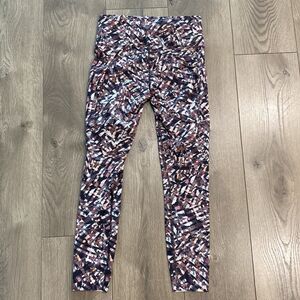 Lululemon Fast and Free 25" Kaleidoscopic Pink Multi Running Leggings Size 4. Excellent condition! Nulux fabric. Non-reflective. Side pockets large enough to fit a cell phone. Wide flat waistband with inside drawstring. Waistband pockets. See pictures for measurements.