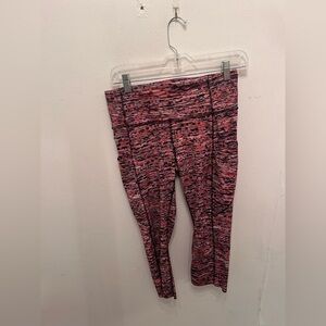 Size 8 Lululemon Fast & Free Crop II with a 21" inseam. Flash peat orange multi, great gently worn condition. little wear, really fun print!