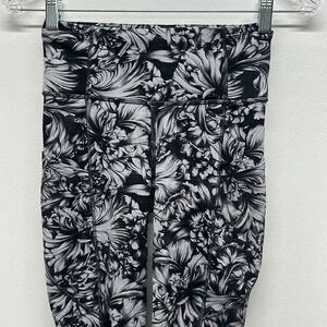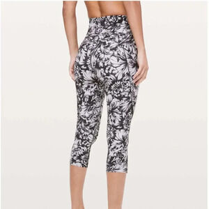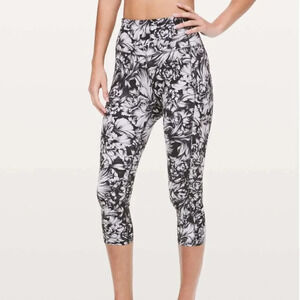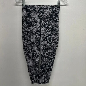 Lululemon Fast & Free Cropped Crop Leggings Black Gray Floral Print Size 4