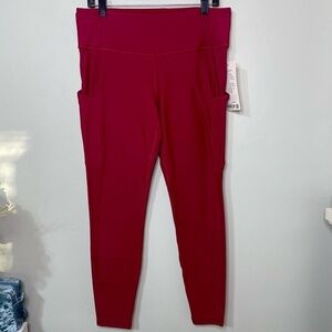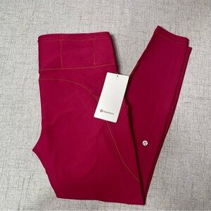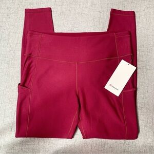 Lululemon Fast & Free Fleece Lined High Rise Tights Leggings. Super stretchy with side pockets and 5 pockets around the waistband. Continuous drawstring. 28” inseam. Color is Pomegranate. Fleece lined for winter. New with tags. Size 12 or 14.