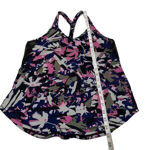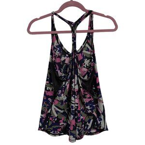 Lululemon Fast Lane Tank Top Size 8 in Pop Cut Boom Juice/Black pattern. Features mesh fabric panels, longer cut. Size 8 approximate as tag removed. See measurements in pictures.