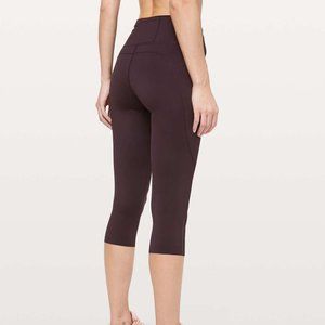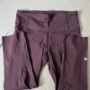 Lululemon Fast and Free Capris Crop, Size 6, Plum Shadow Purple Burgundy