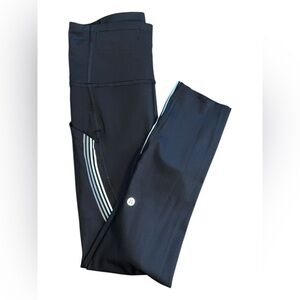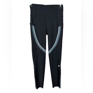 Lululemon Fast and Free Crop 21” – Black with Reflective Stripes – Size 4