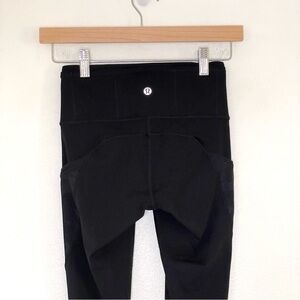 Lululemon Fast and Free Crop 23” Mesh Legging in Black / Incognito Camo Emboss Rotated Black, Size 2. Style W6AZFS.