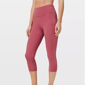Lululemon Fast and Free High Rise Cropped Leggings Pockets Cool Cherry Tint Pink 4