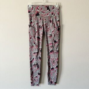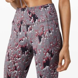 Lululemon Fast and Free High Rise Tight 25” in Floral Flux Multi gray and pink print. Size 4. Nulux fabric. Side pockets. Retailed for $128. Pre-owned, excellent used condition except for marker on interior waistband (cannot see when wearing).