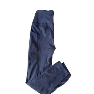 The high-rise V-shaped waistband provides a flattering, sculpted fit, while the side drop-in pockets and a hidden back pocket keep essentials secure. Cropped 7/8 length hits above the ankle, ideal for warmer workouts or casual wear.