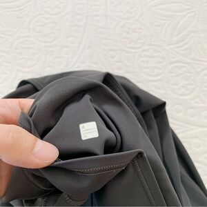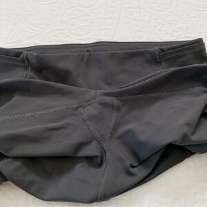Weightless, quick-drying, sweat-wicking, lightweight, high-rise running tights in dark grey color (possibly Graphite Carbon).