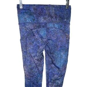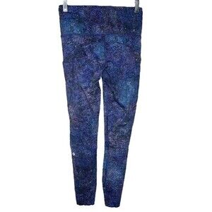 Women's Lululemon Athletica Fast & Free Tights, size 4. In excellent condition with minimal visible wear, appear to be nearly new! This colorway is Polar Lights Blue Multi, an allover print in black, blue, purple, and pink. Lightweight Nulux fabric is quick-drying and sweat-wicking for a barely-there feeling that won't slow you down or distract you on your longest run. High rise to keep you covered and secure. Side pockets & waistband pockets. Interior drawcord to customize your fit. 25" inseam.