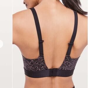 The bra clip in the back turns it into a racer back, adjustable back and shoulder straps, color is lacescape Spanish rose black, ultralu fabric - soft, smooth, supportive, added Lycra for shape retention, smooth seams