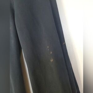 Womens black pants size 10. No size or material tag but I did include approximate measurements. According to their website a 30" waist is considered a size 10. These pants do have stains all over. I believe they would be ok to cut off into shorts because all of the spots are down on the legs around the middle thigh or down below that. These are not like typical yoga style pants, the material is more like cotton. Long inseam. Athleisure. Casual. Yoga. DIY project.