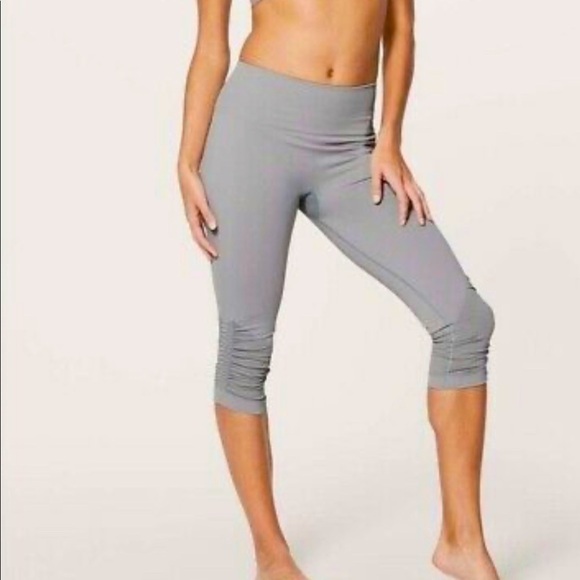 Lululemon Flow Compression Leggings Shorts Crop Rushed Stretchy In Gray Size 6