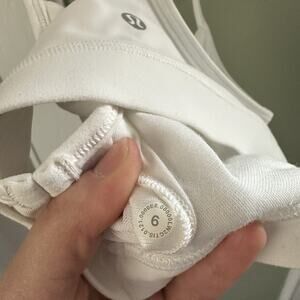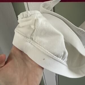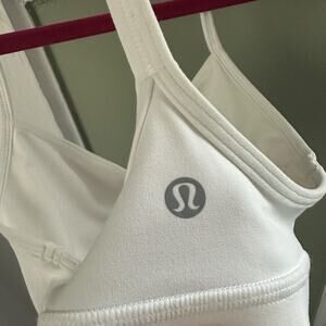 Great white yoga bralette from Lululemon good condition some light fabric wear and one spot on the inside band (might come out, not sure). Does not come with the cup inserts but they can be put in. Size 6.