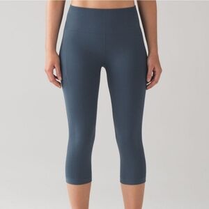 Lululemon Flow and Go Crop High Rise Compression Leggings in Astro Blue. Seamless construction to prevent bulk and chafing. No dig waistband lies flat against your skin. Compression for a hugged sensation that holds you close and moves with you. Excellent Like New Condition! Absolutely no signs of wear! No tag, but 1 bar indicates a size 2.