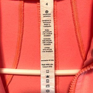 Lululemon Forme Jacket in a peachy (orangish pink) color!