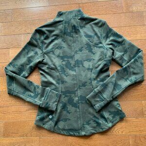 Lululemon Forme Jacket-Excellent Condition!! No Longer Sold-Savasana Fatigue Green Camo Print-Extremely HTF-Please see pic for specs. Check out my closet for tons of other lulu and Athleta items!! Bundle & save on shipping-PRICE FIRM!!