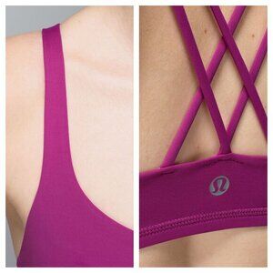Lululemon Free To Be Bra 10 Ultra Violet, GUC with light wear (see distressing at back logo), missing cup inserts.