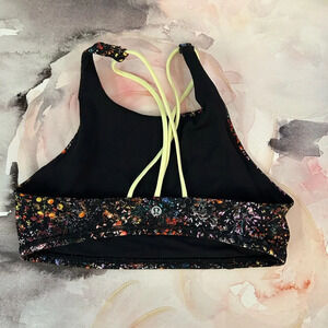 Lululemon Free To Be Sports Bra •size 6 high neck •Strappy back •Flowerescent Multi / Lemon Ice •luxtreme •logo on back •no padding