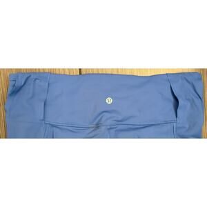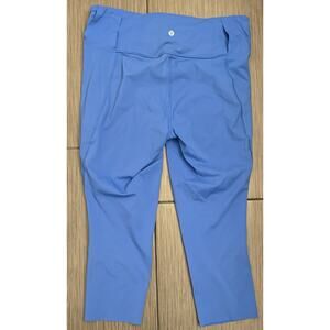 The Lululemon Free To Speed High-Rise Crop Leggings in Wild Bluebell, size 12, are versatile activewear pants perfect for various occasions such as travel, workouts, and casual wear. Made from Nulux fabric, these leggings feature a pull-on closure, a 21-inch inseam, and a high-rise waist that offers slimming and moisture-wicking properties. With a solid blue color and a sleek cropped style, these leggings are ideal for women who value both style and functionality in their activewear wardrobe. They come in a size 12 with a 34-inch waist, making them a comfortable and flattering fit for athletic activities.