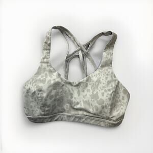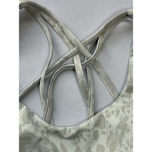 Lululemon Free to Be Serene Bra Size 6 Gray Camo Print Strappy Cross Back Yoga