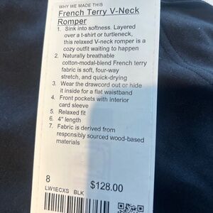 Lululemon French Terry V-Neck Romper – Size 8 (Black)