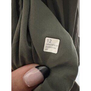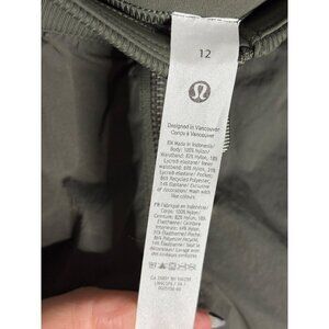 Excellent condition, no flaws, size 12. Lululemon Front Zip Mid-rise Ruched Crop Pants Army Green. Cropped length with an elastic waist and ruched details. Relaxed fit is roomy with pockets. Front zipper with zipper hems.