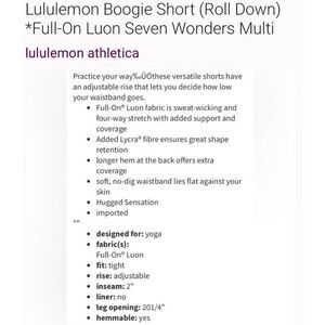 Lululemon Full Seven Wonders Multi Boogie shorts Roll Down size 4
