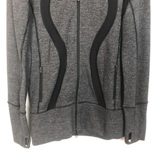 Lululemon women's athleisure jacket in charcoal. Collared. Full zip. Long sleeves. Thumbholes. Stretch. In good used condition. No stains, tears or holes.