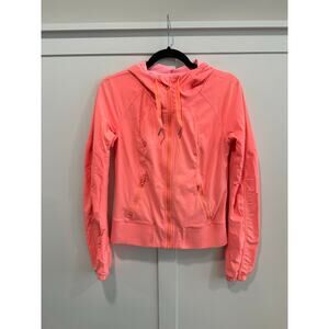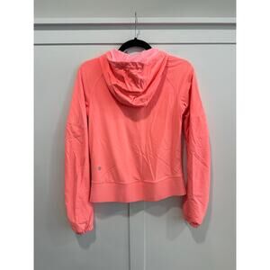 Wind resistant fabric with soft flannel like lining. Hood is also lined. Adjustable drawstring. Front zippered pockets.