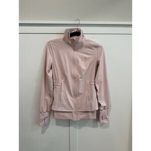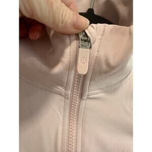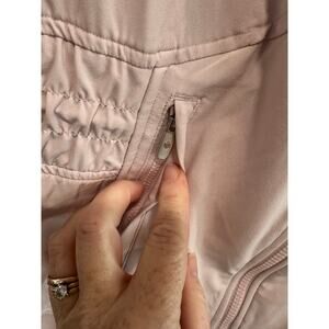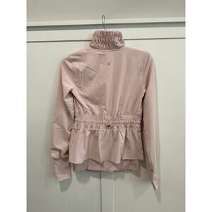 Such amazing details. High neck gathering in back. Gathers at waist. Front zippered pockets. Thumbholes. Adjustable toggle at back waist.