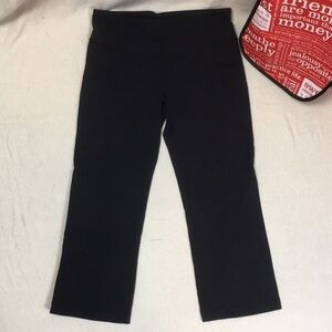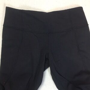 Gather and crow crop - ruched back detail and slits at back calf - very gently worn, very light sueding at gusset- size 6 - will ship with small lulu tote