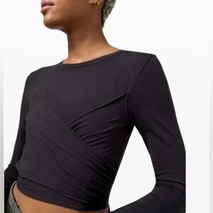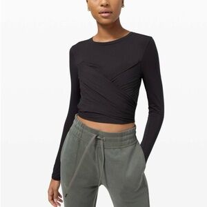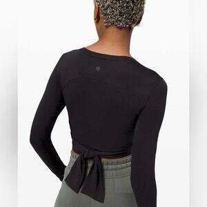 Sleek, flattering, and unbelievably soft, this Lululemon long sleeve is designed with wrap ties that cinch at the waist and knot at the back for a customized fit. Made from breathable Pima Cotton with added Lycra® for stretch and shape retention, it’s perfect for layering, yoga, or everyday wear.