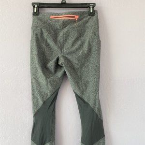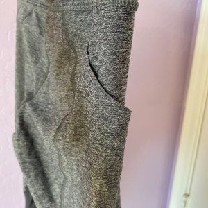 Great Condition Lululemon leggings. Only used for about four months. Heathered grey with back zippered pocket and side pocket for your phone. Also has mesh panel at the rear the knees.