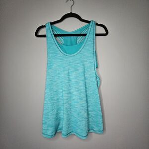 Lululemon Glide and Stride Tank Heathered Viridian Green Layered Bra Shirt Sz 8