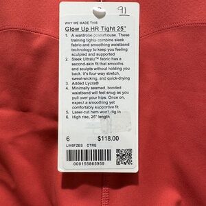 Lululemon Glow Up High Rise Tight 25” Leggings Desert Red Size 6 NEW