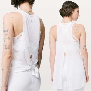 Like new Lululemon white sheer top in a size 8. I ship daily. Adapt this extra-long tank to your personal style by tying it up, or leaving it long and flowing.