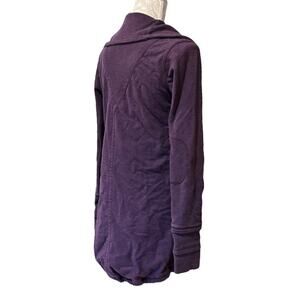 Lululemon Gratitude Wrap Jacket in purple, size 4. Features a double-breasted front, cozy stretch fabric, and elevated activewear style. Perfect for layering post-workout or casual wear.