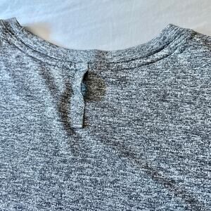 Soft, breathable gray muscle tank with a minimalist design and motivational “Better Each Day” tag at the inner hem. Features a back neckline loop detail and full-length fit. Excellent pre-owned condition.