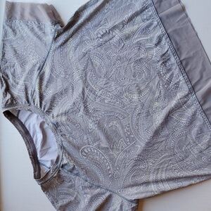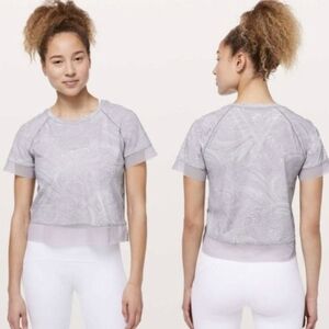 Lululemon Gray Paisley Stripe in Stride Short Sleeve Crop Top