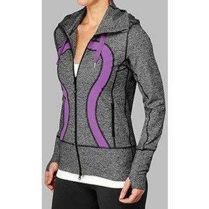 - Pre-owned, in excellent condition, no visible signs of wear. - 2 pockets, no rip tag - Super soft with thumb holes. Easy to throw on after a yoga session or out and about running errands. - Size 8 - Color: Heather Gray/Purple MEASUREMENTS: LENGTH 25” CHEST 19” armpit to armpit SLEEVE 27” All measurements provided are approximate and subject to human error.