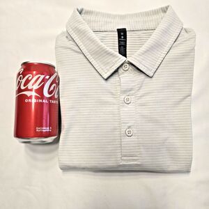 Lululemon Gray Striped Polo Shirt – Size M – Soft Stretch Performance Fab Value